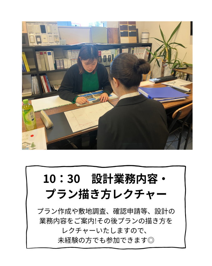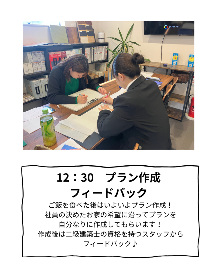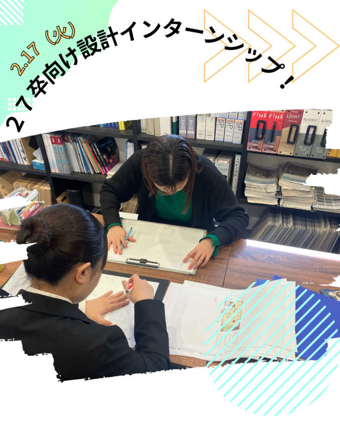 2.17 27卒設計向けインターンシップ イベント名27卒設計向けインターンシップ 日時2026年2月17日 会場感動姶良支店 イベントの様子 2月17日(火) 設計向けインターンシップ開催! 本格的な間取りの作成、 二級建築士の資格を持つスタッフからのフィードバック、 ランチ座談会、 モデルハウス見学等充実した内容でした! 参加していただきありがとうございました☺ 設計に少しでもご興味のある学生様いらっしゃいましたらお電話やメール等お待ちしております!